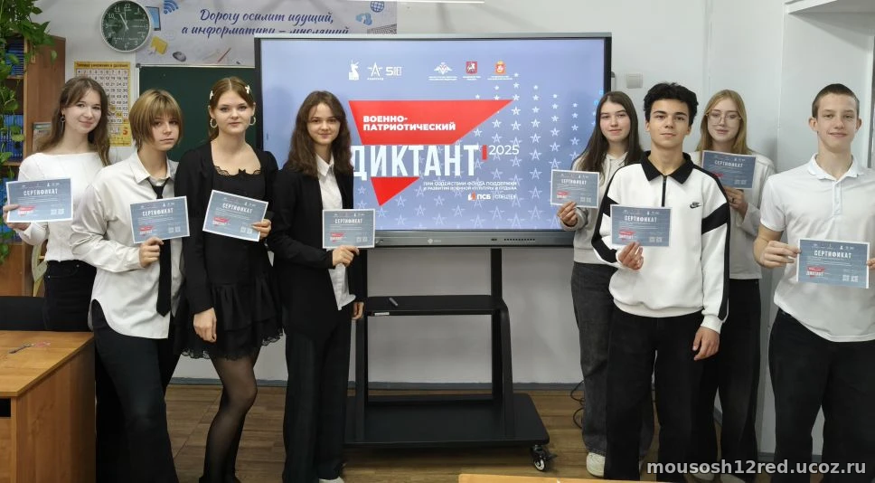 1 декабря 2025 года ученики 9 «А» класса (20 человек) приняли участие в IV Всероссийской просветительской акции «Военно-патриотический диктант-2025».